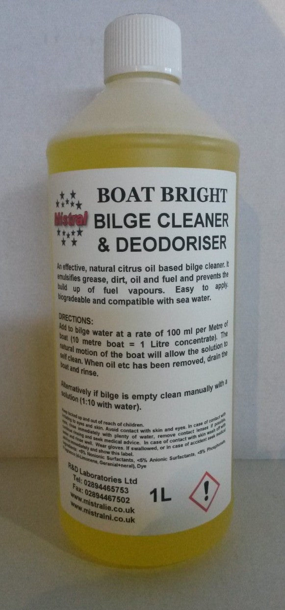 An effective, natural citrus oil, based bilge cleaner. It emulsifies grease, dirt, oil and fuel and prevents the build up of fuel vapours. Easy to apply, biodegradeable and compatible with sea water.